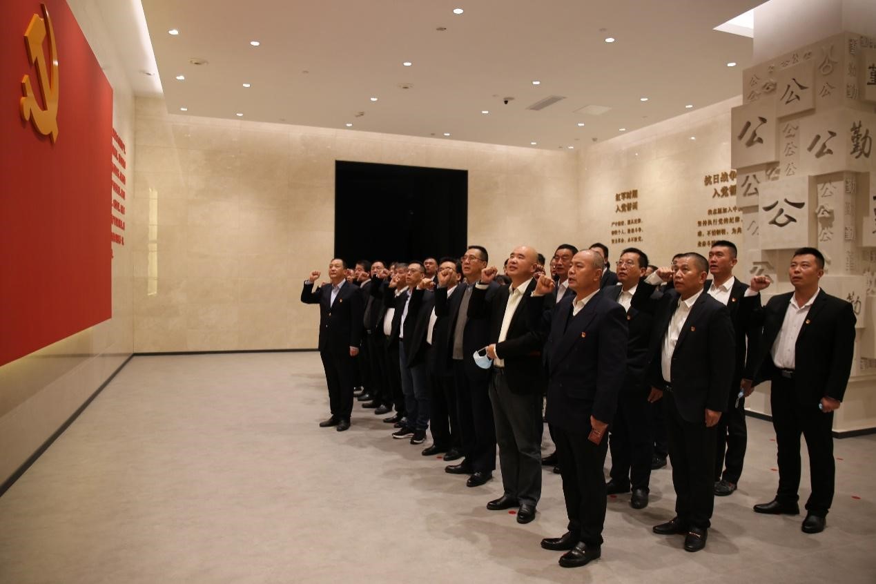 在高绍和的领誓下,参与进来勾当的整个党团员领导干部看向党旗,追忆申请入党誓辞,回望初心不忘铮铮有声版,许了苦守目标的许诺。